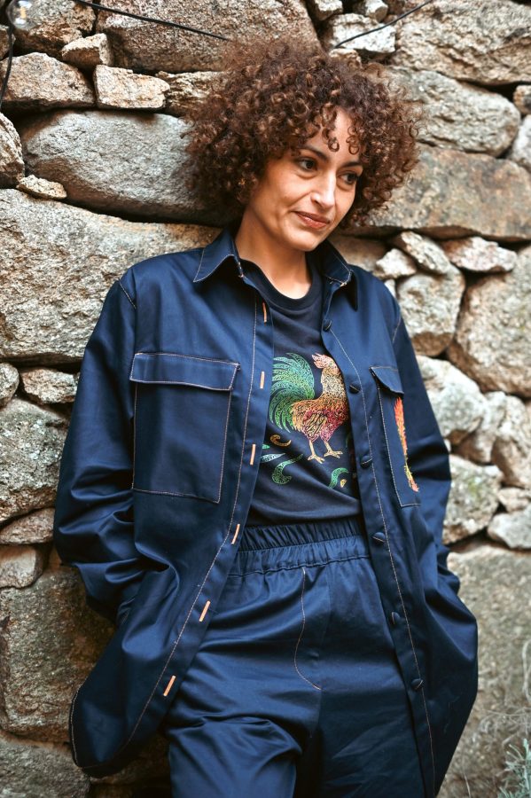 Camiseta de algodón de manga corta, donde destaca en la parte central la ilustración creada para o Galo de Antioquía. En la espalda detalle de bordado.